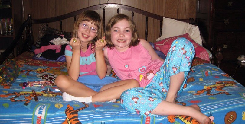 Emma and her best friend and co-creator of the Superheroes game, Katie, in first grade.