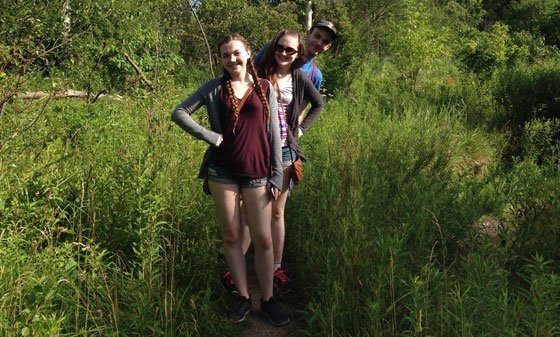 Emma enjoying a day in the great outdoors with her older sister Annabeth and older brother David.